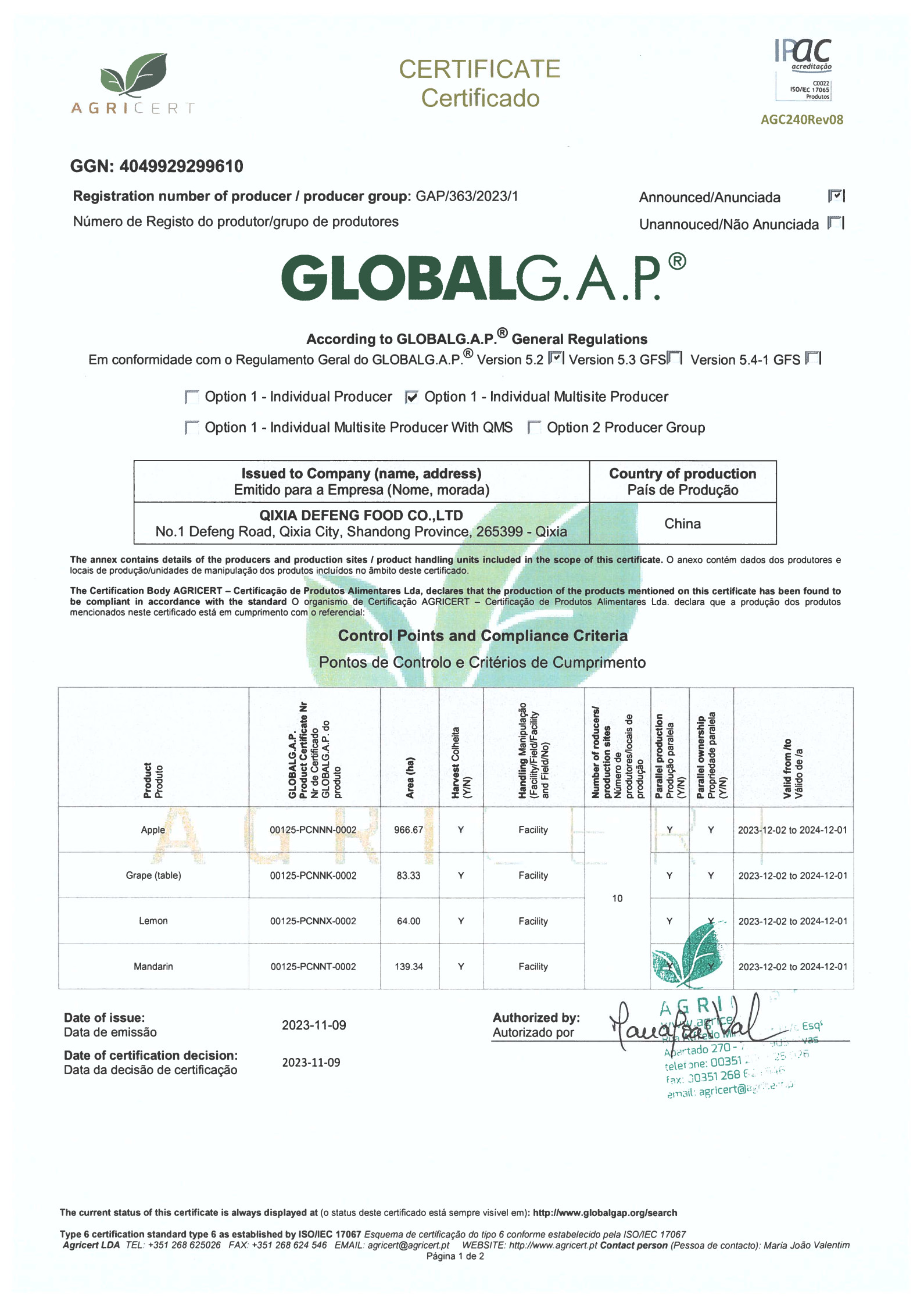GLOBAL G.A.P.全球良好農(nóng)業(yè)規(guī)范證書