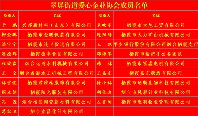 “德厚者流光,業(yè)勤者流芳”。愛心幫扶是中華民族的傳統(tǒng)美德,翠屏街道成立愛心企業(yè)協(xié)會,19家愛心企業(yè)(團(tuán)隊)用實際行動踐行企業(yè)的社會責(zé)任和熱心參與公益事業(yè)的企業(yè)擔(dān)當(dāng)。
