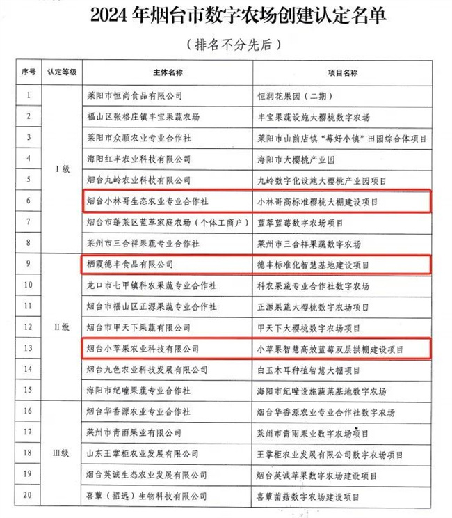 榜上有名!棲霞這三家農(nóng)業(yè)主體入選2024年煙臺(tái)市數(shù)字農(nóng)場(chǎng)